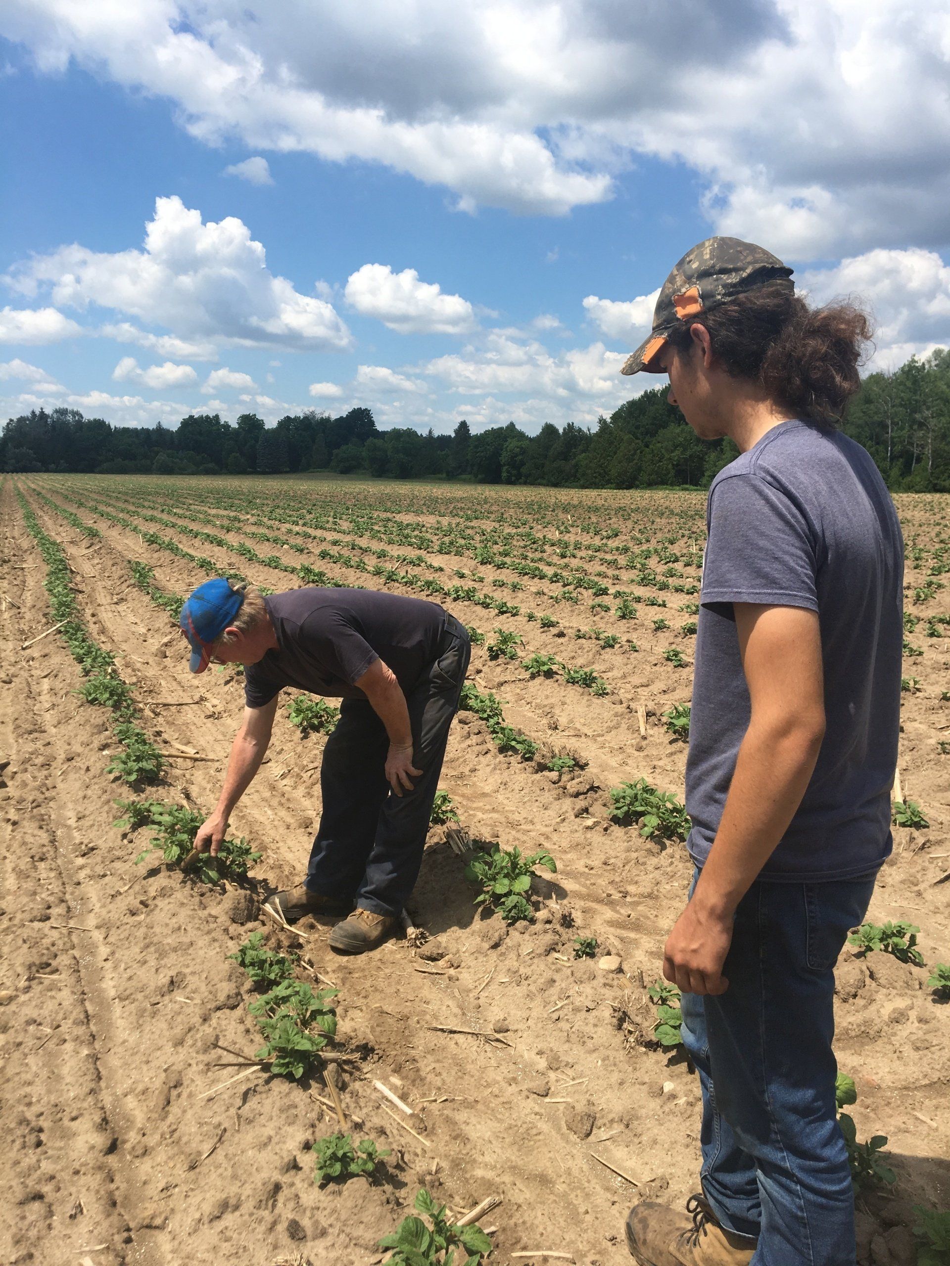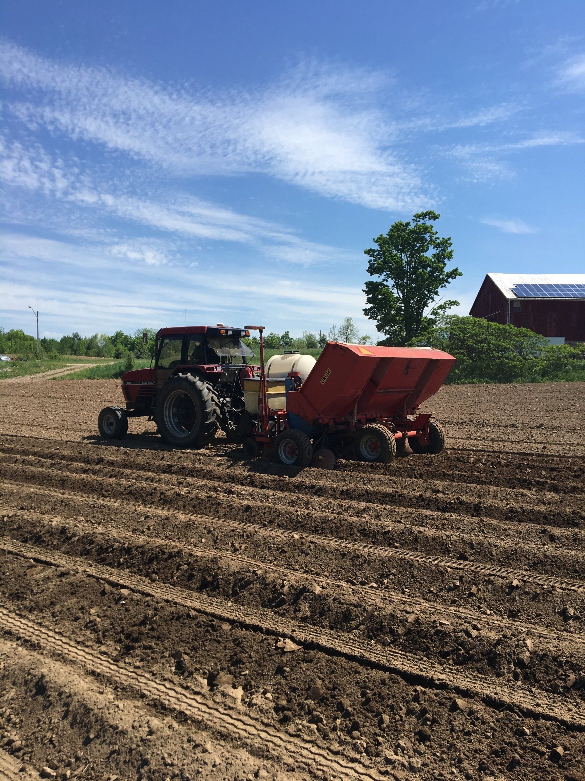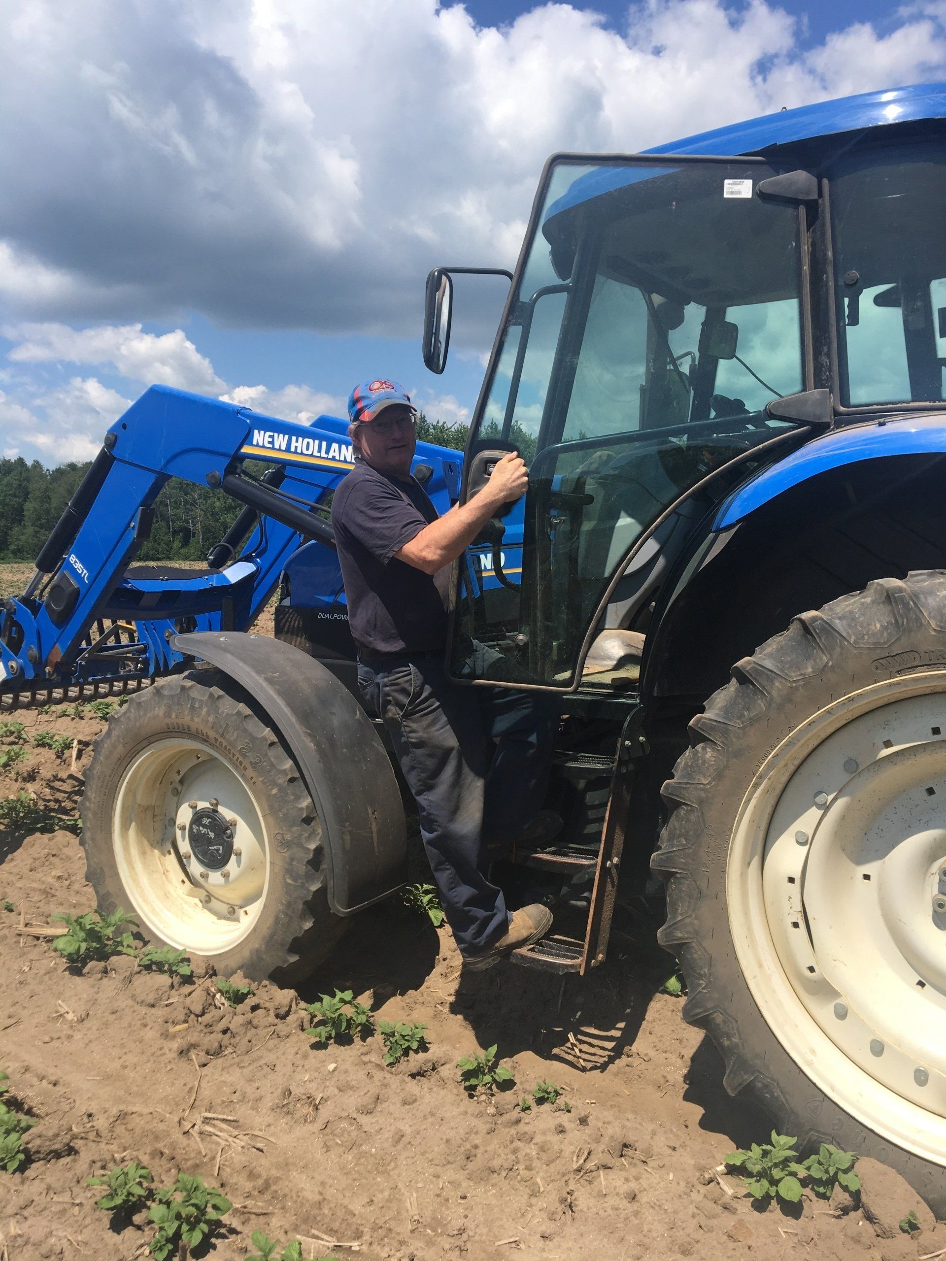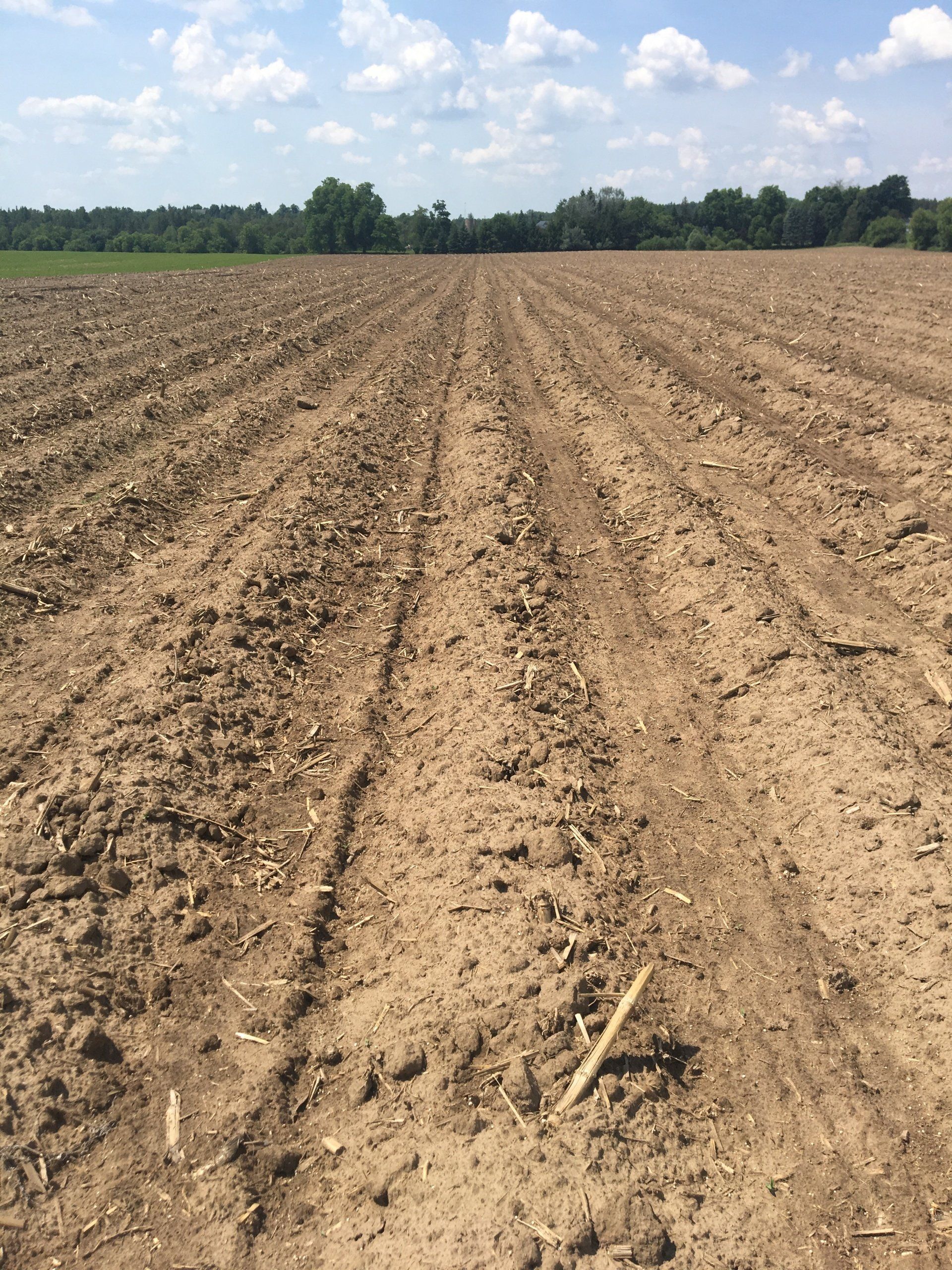 The next job that we must do in the field after plants have emerged is to “hill”. This is simply a process to move soil on top of the small hill made by the planter so that the potatoes will be well covered as they form and grow. Depending on the growth rate, amount of rain and other factors hilling may be performed more than once in the same field